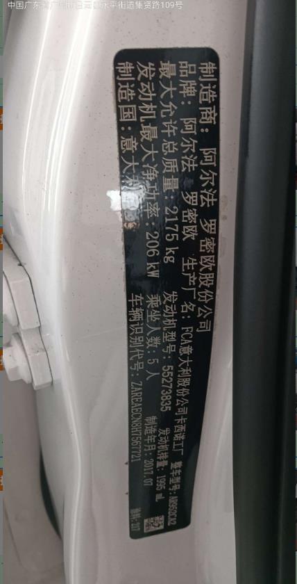 车牌号 粤****** 品牌 阿尔法罗密欧