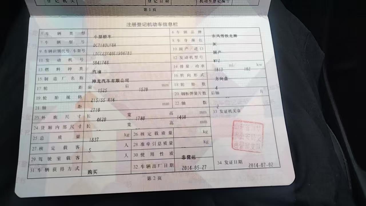 初次登记日期 2014-07-02 车辆名称 雪铁龙C4L