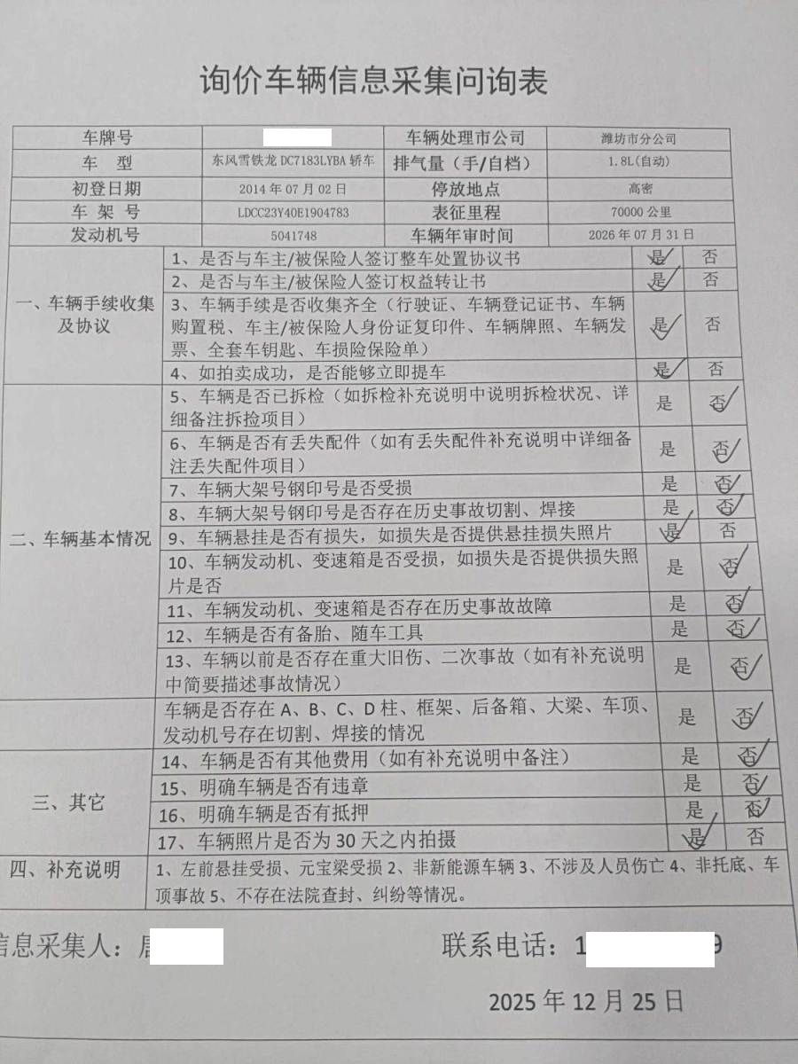 拍卖编号 N202512260353 事故类型 碰撞车
