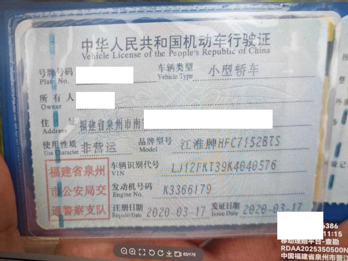 车牌号 闽****** 品牌 江淮