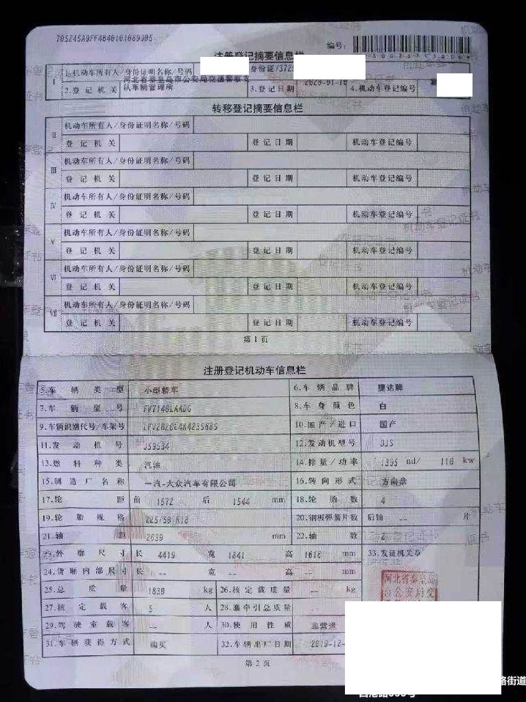 初次登记日期 2020-01-10 车辆名称 捷达牌