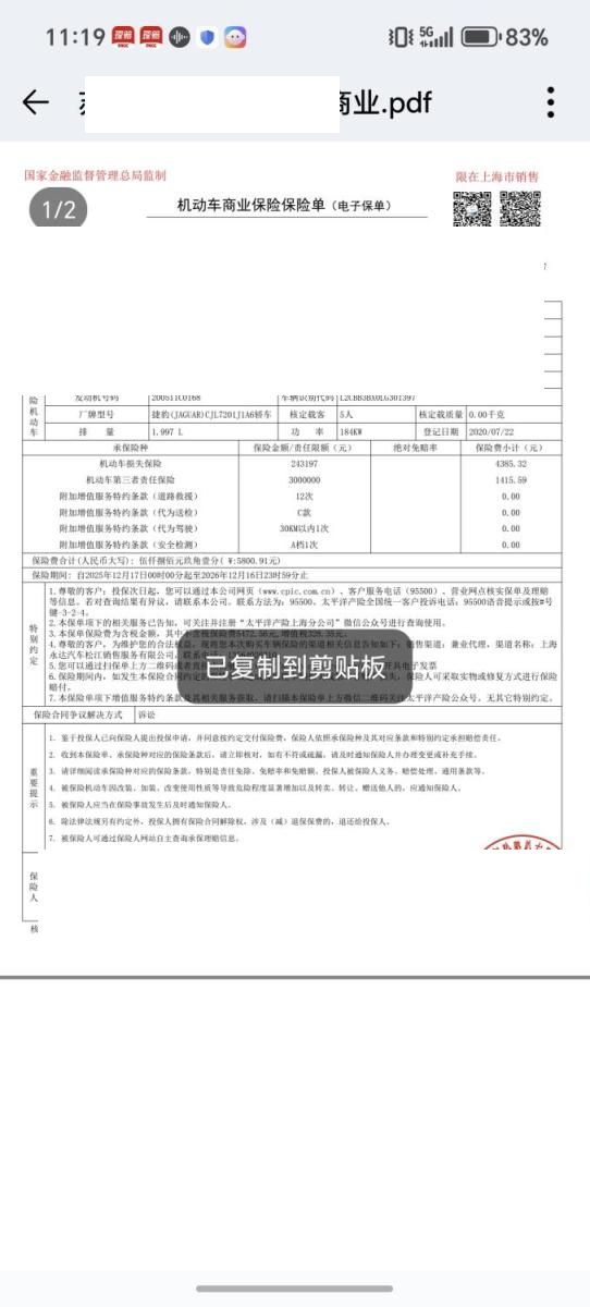 车牌号 苏****** 品牌 捷豹