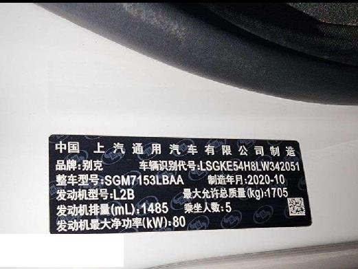 初次登记日期 2020-11-18 车辆名称 别克 英朗