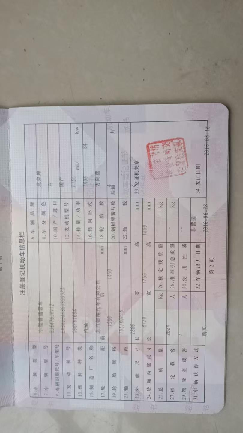 初次登记日期 2016-08-18 车辆名称 北汽幻速H3
