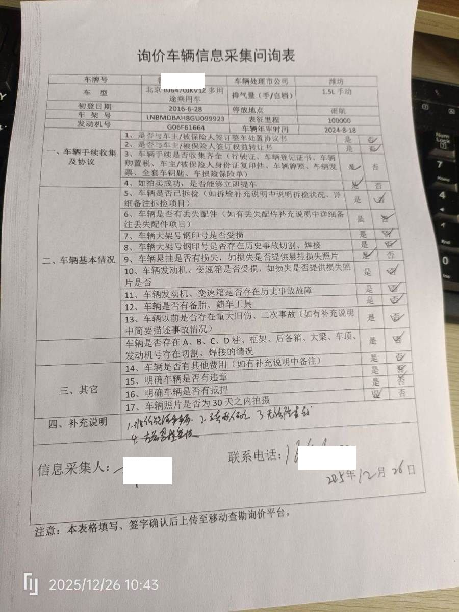 拍卖编号 N202512260492 事故类型 碰撞车