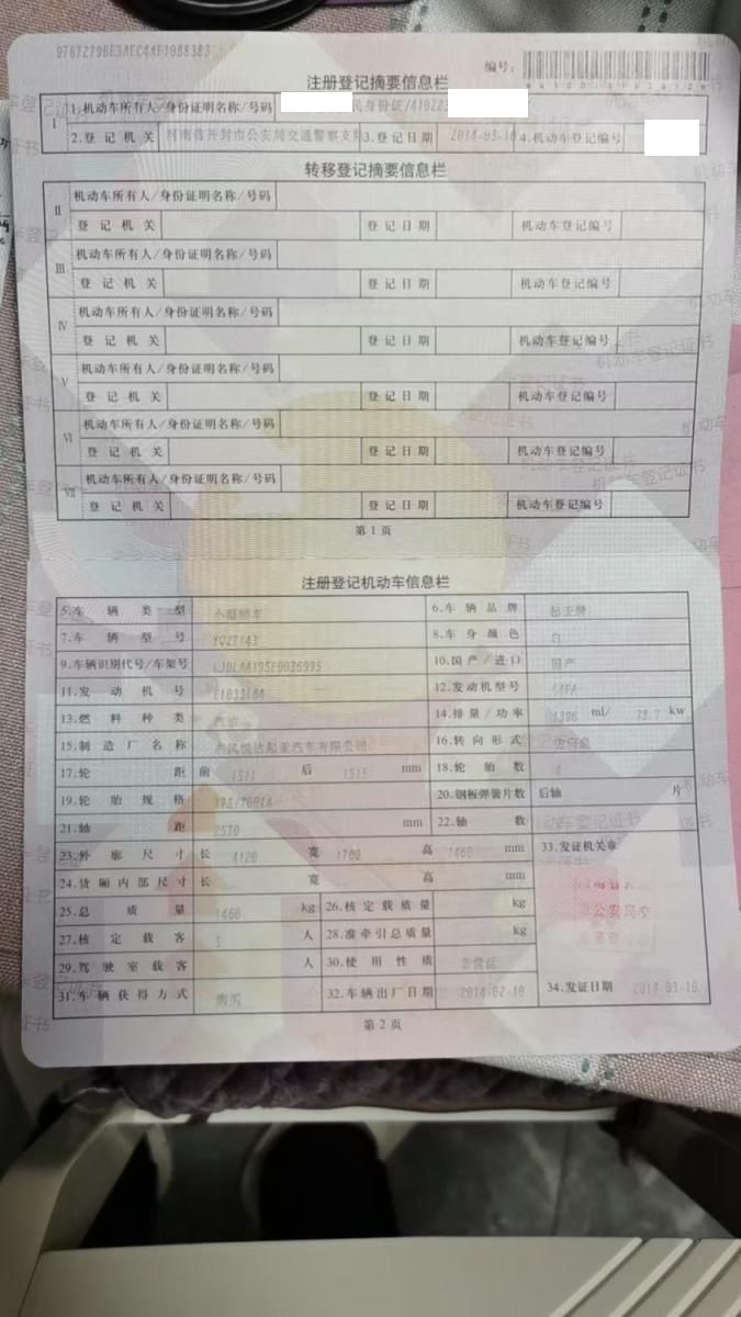 底盘号码 LJDLAA195E0036995 变速箱类型 手动