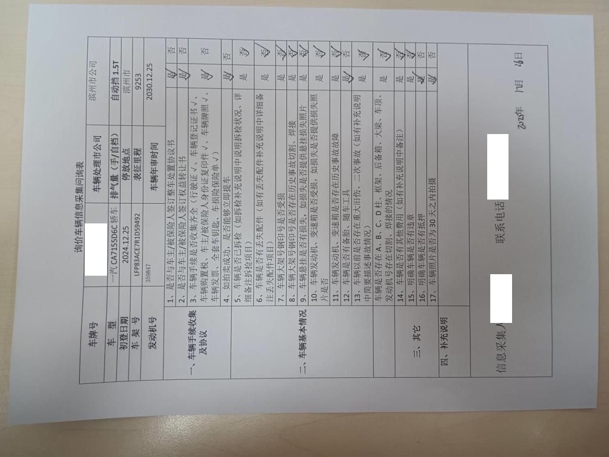 车架号是否受损 使用性质 非营运