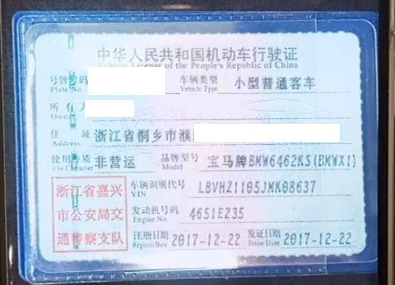 车辆归属地 浙江省嘉兴市 车辆停放仓库 上海市