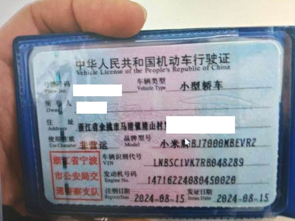 初次登记日期 2024-08-15 车辆名称 小米汽车 小米