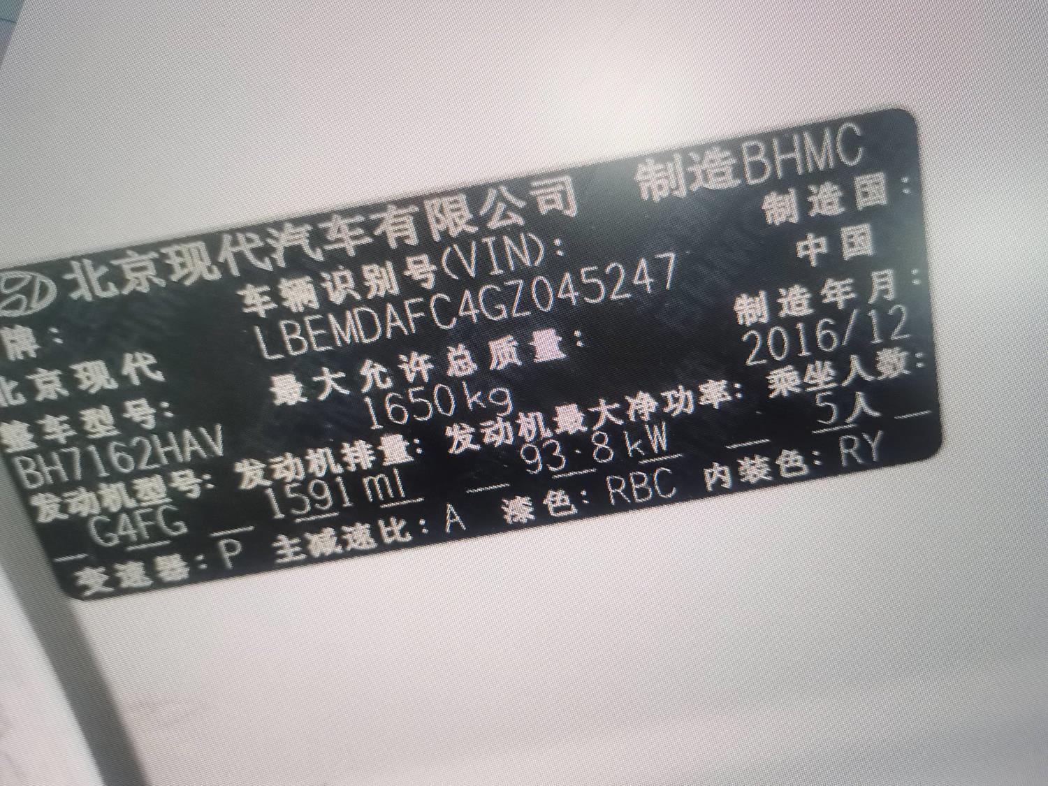 初次登记日期 2017-01-04 车辆名称 现代 朗动