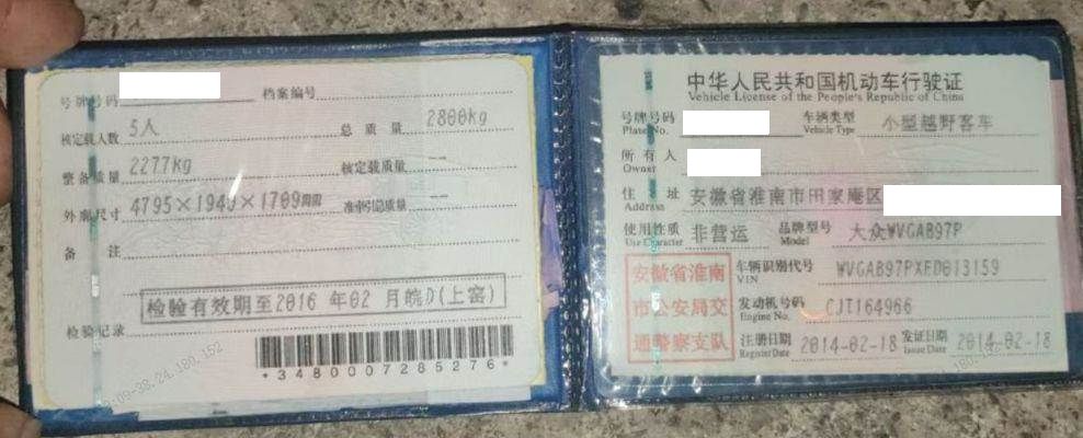 车辆归属地 安徽省淮南 车辆停放仓库 安徽省合肥市合肥市