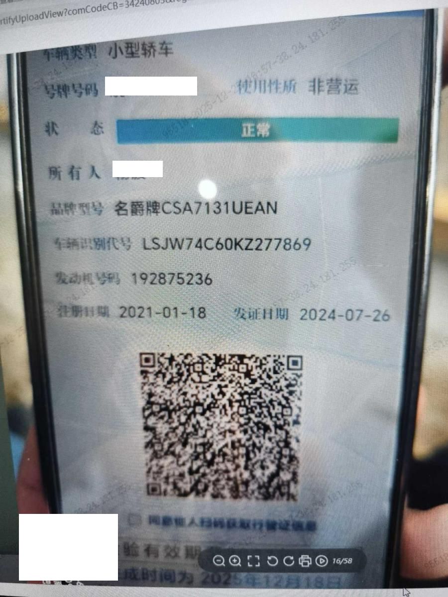 车牌号 皖****** 品牌 名爵