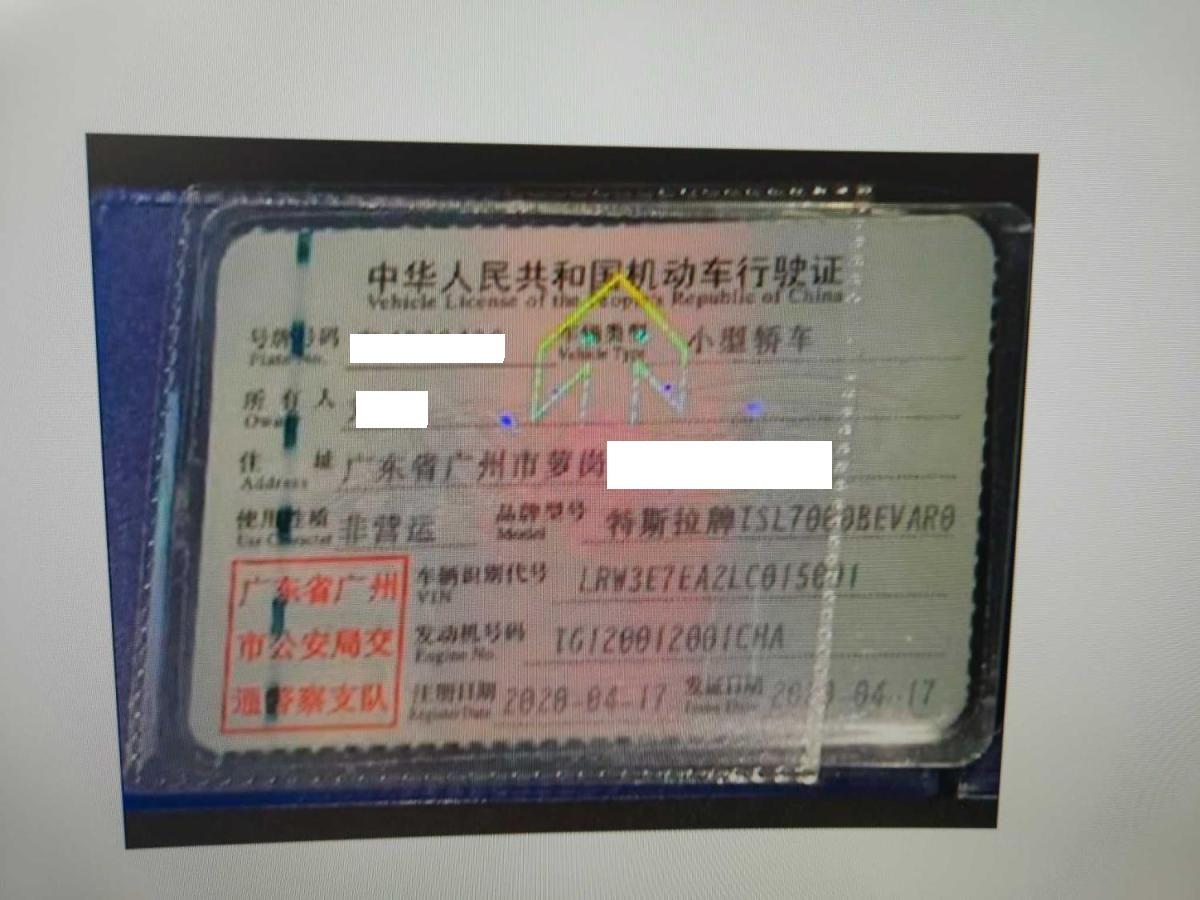 初次登记日期 2020-04-17 车辆名称 特斯拉 Model