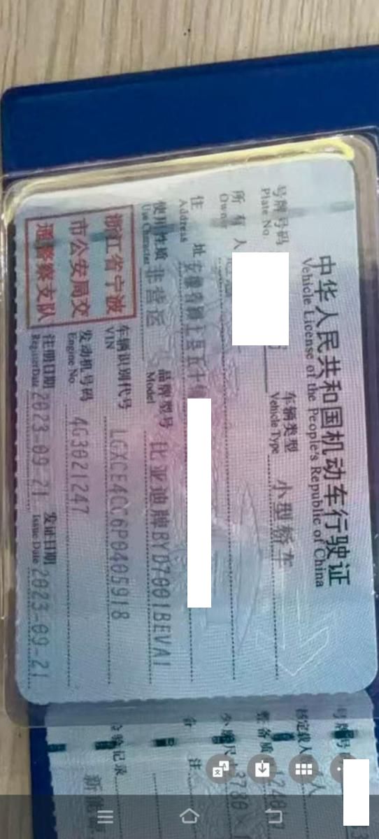 车牌号 浙****** 品牌 比亚迪