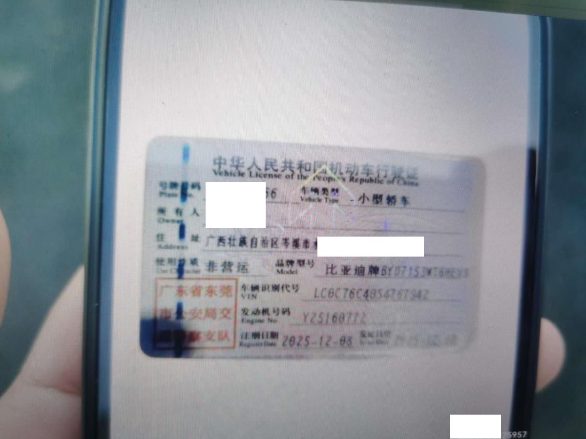 初次登记日期 2025-12-08 车辆名称 比亚迪