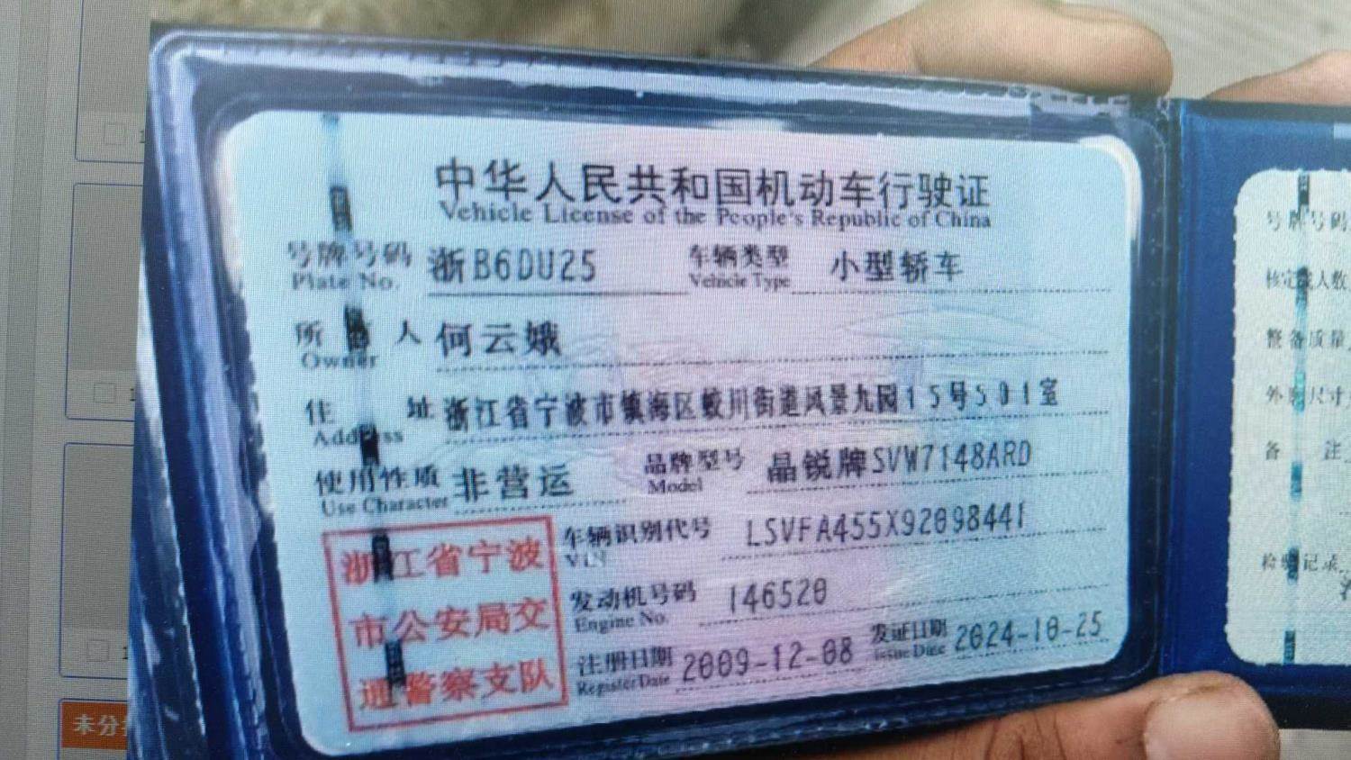 车辆归属地 浙江省宁波市 车辆停放仓库 浙江省宁波市宁波市