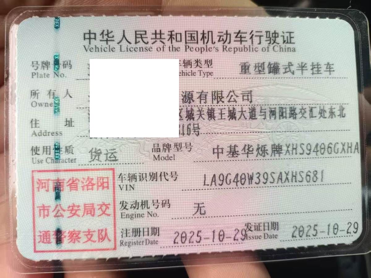 初次登记日期 2025-10-29 车辆名称 中基华烁牌