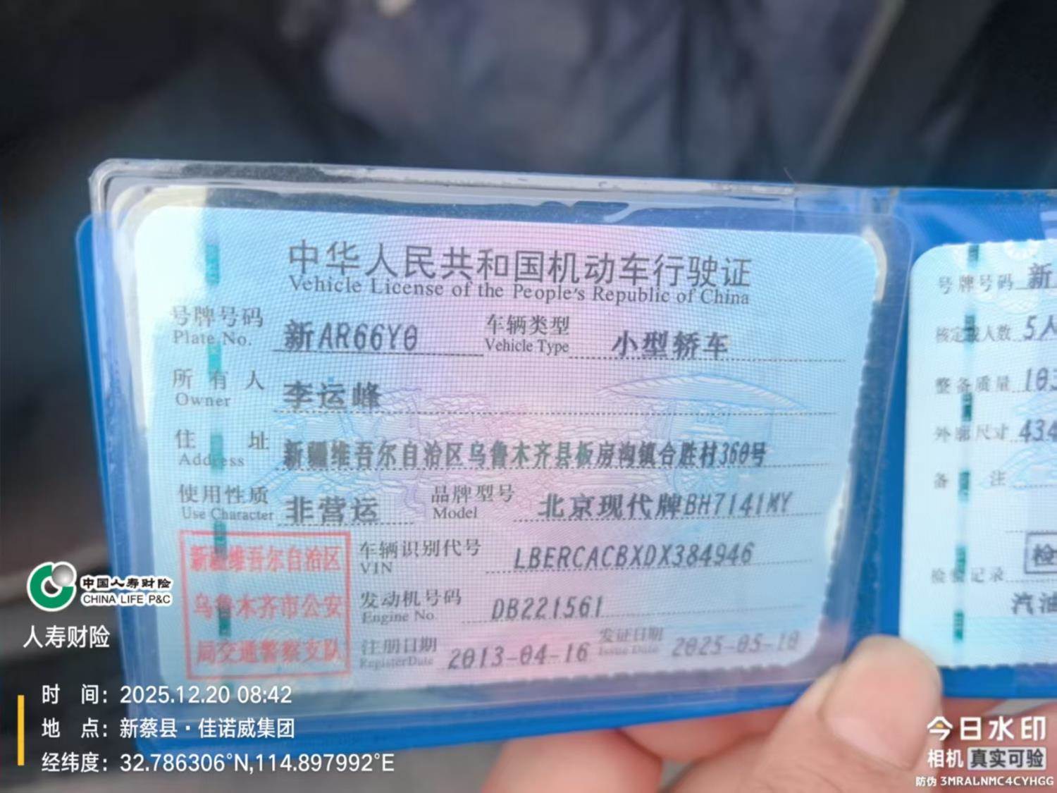车辆归属地 新疆维吾尔自治区乌鲁木齐市 车辆停放仓库 河南省驻马店市驻马店市