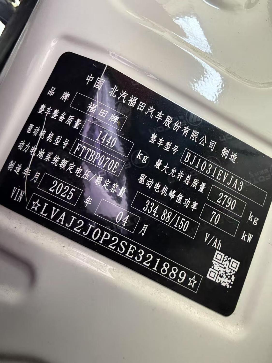 初次登记日期 2025-07-04 车辆名称 福田牌