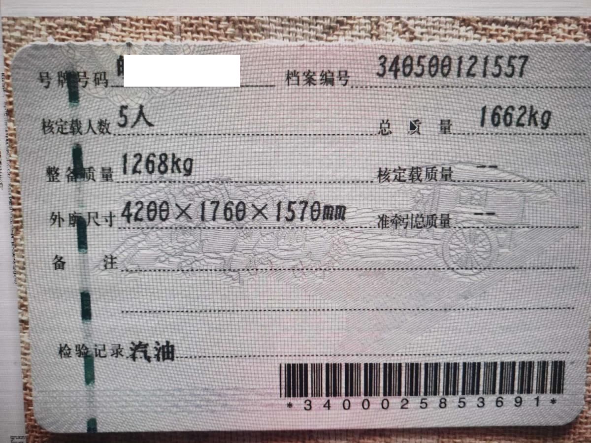 车牌号 皖****** 品牌 奇瑞