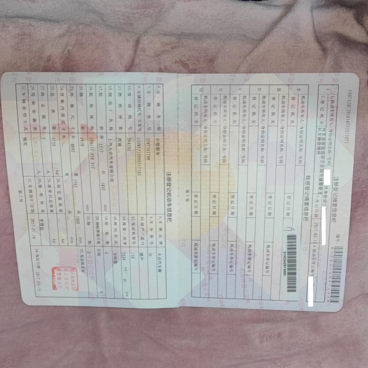 车牌号 冀****** 品牌 大众