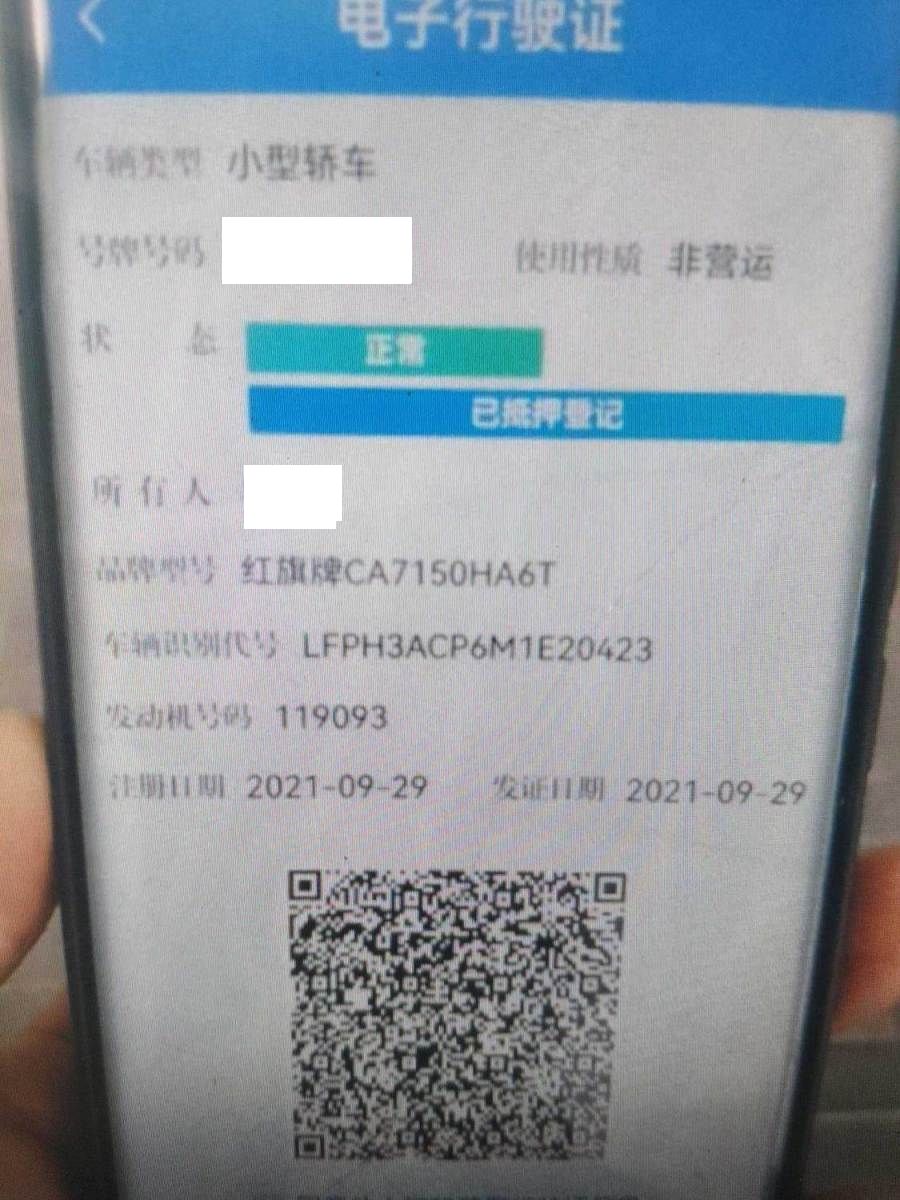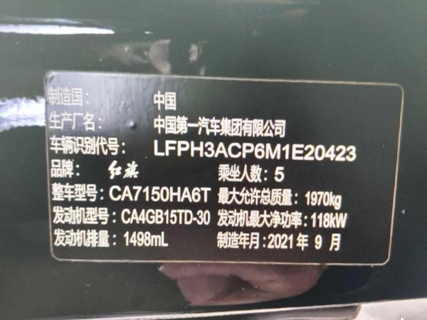 初次登记日期 2021-09-29 车辆名称 红旗H5