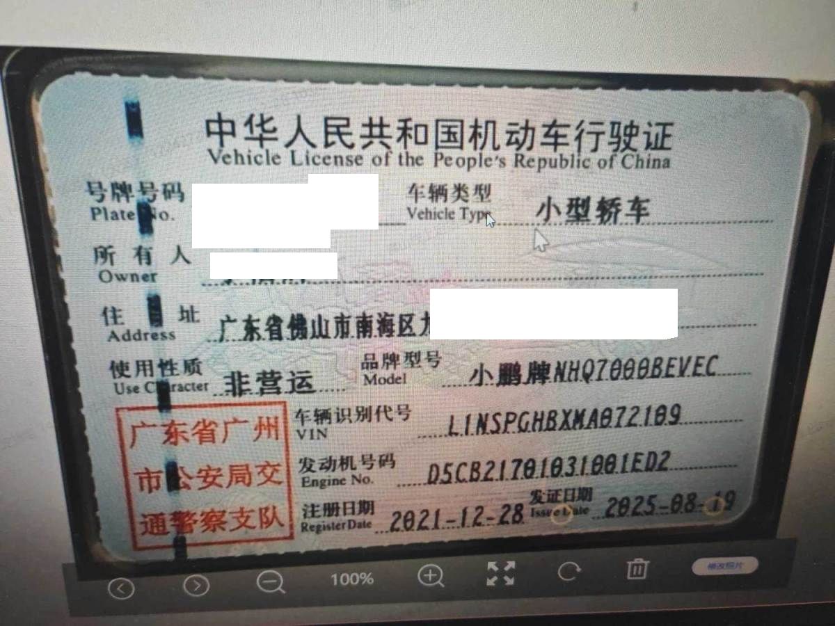 初次登记日期 2021-12-28 车辆名称 小鹏牌