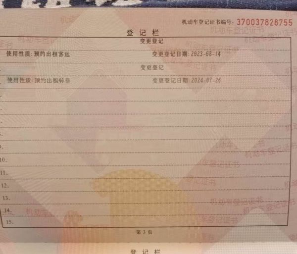 车架号是否受损 未知 使用性质 非营运