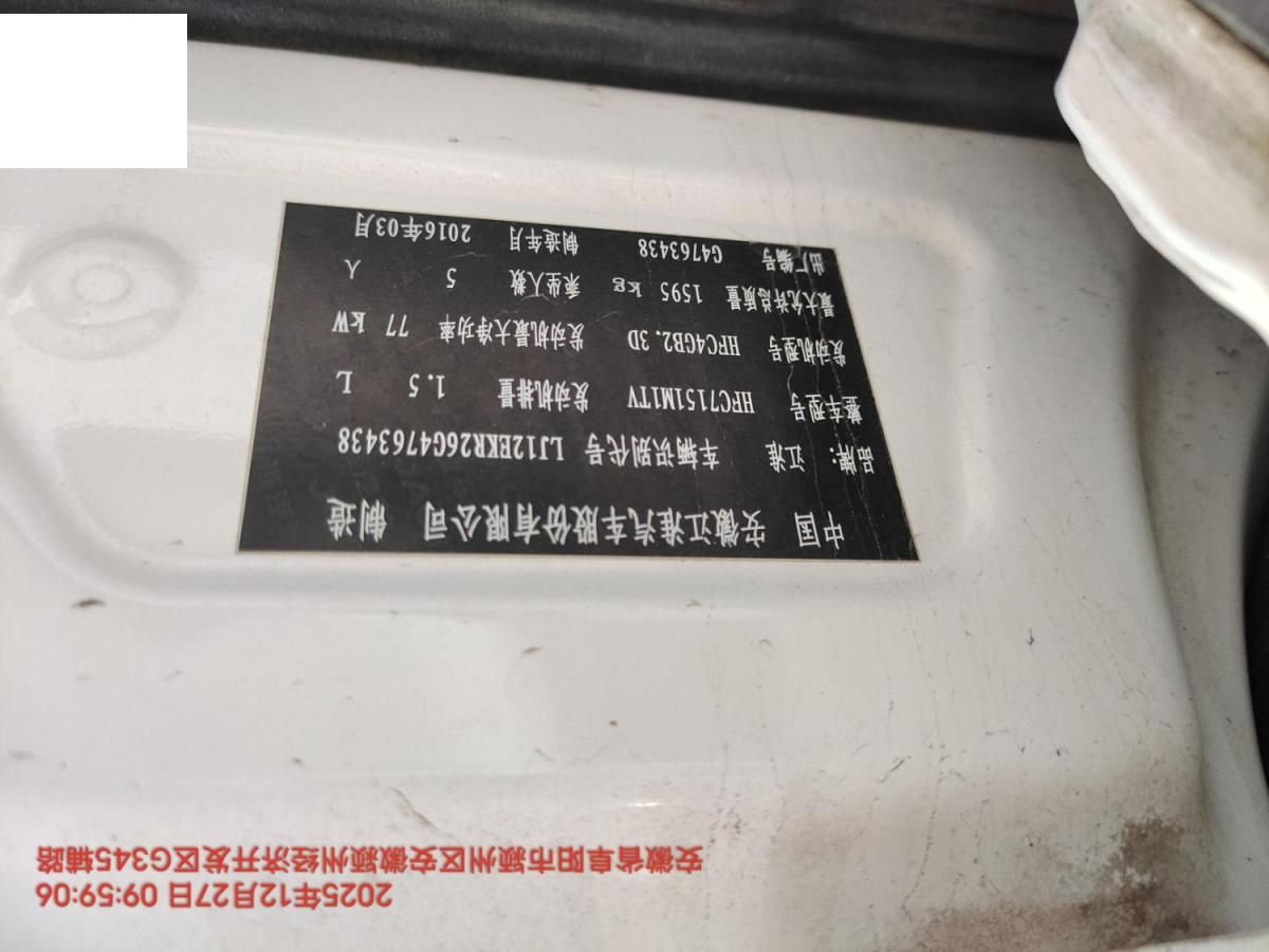 底盘号码 LJ12EKR26G4763438 变速箱类型 自动