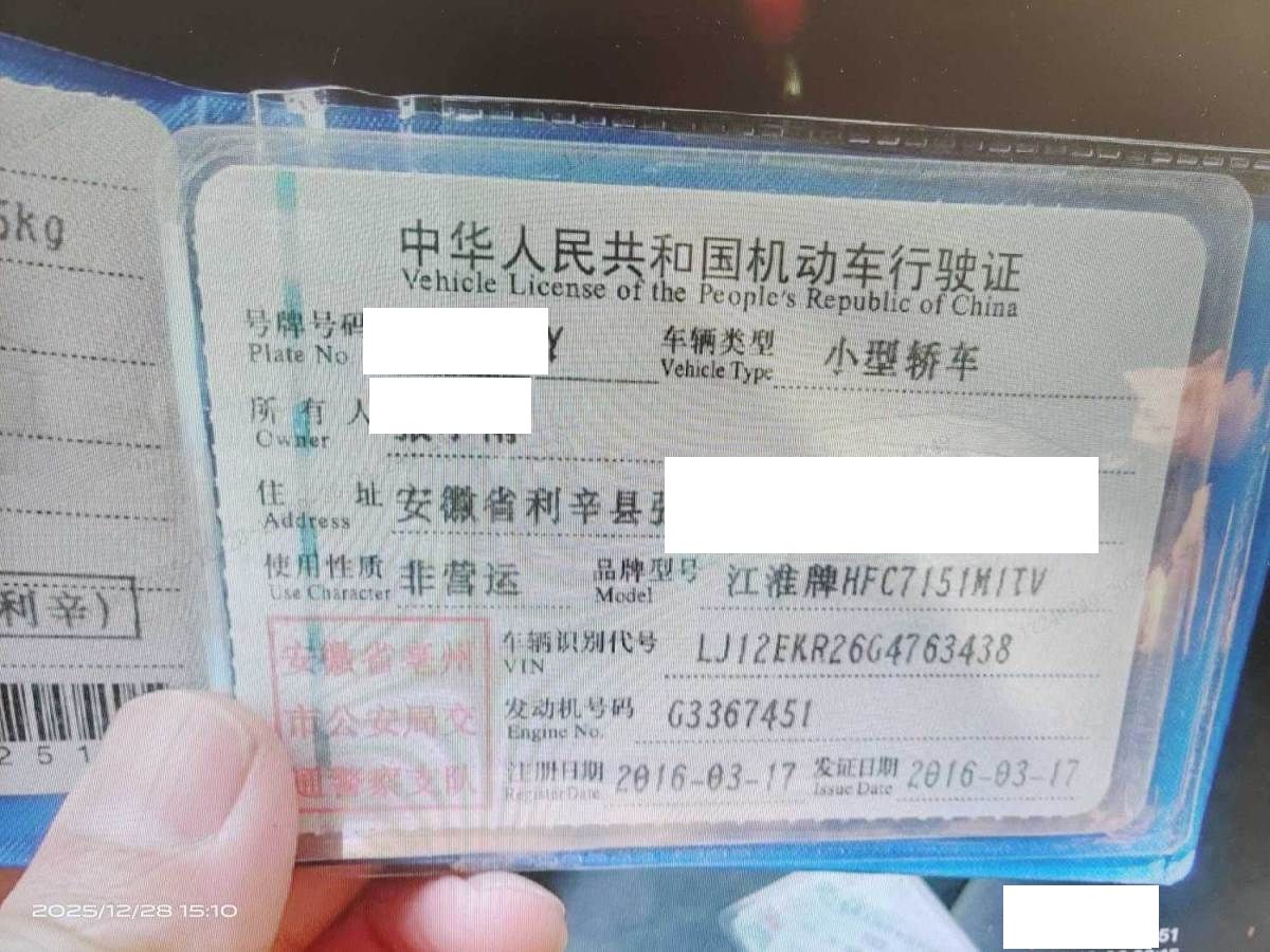 车牌号 皖****** 品牌 江淮