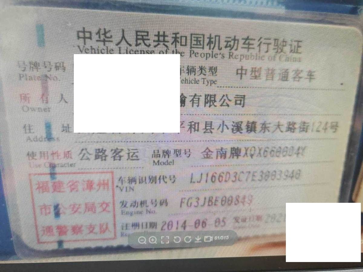 车架号是否受损 未知 使用性质 公路客运
