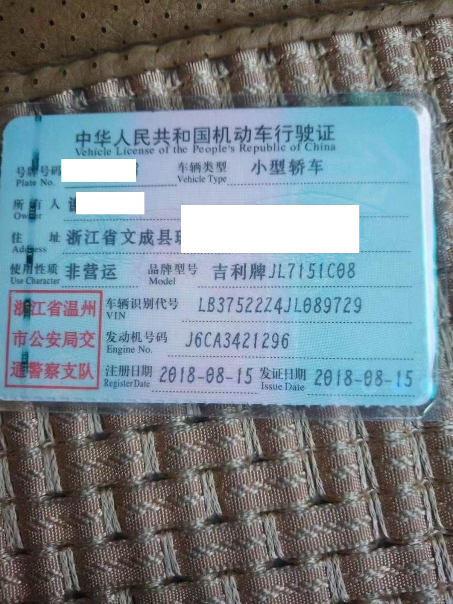 车牌号 浙****** 品牌 吉利