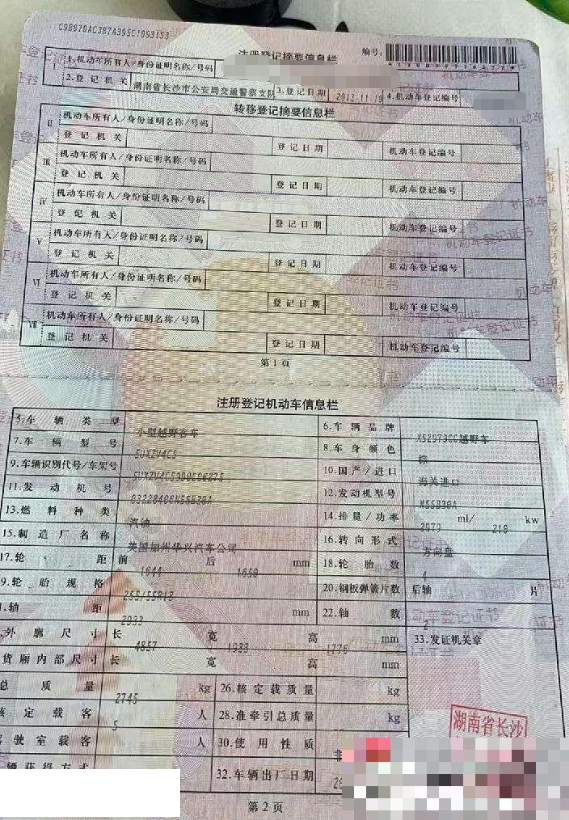 车架号是否受损 未知 使用性质 非营运