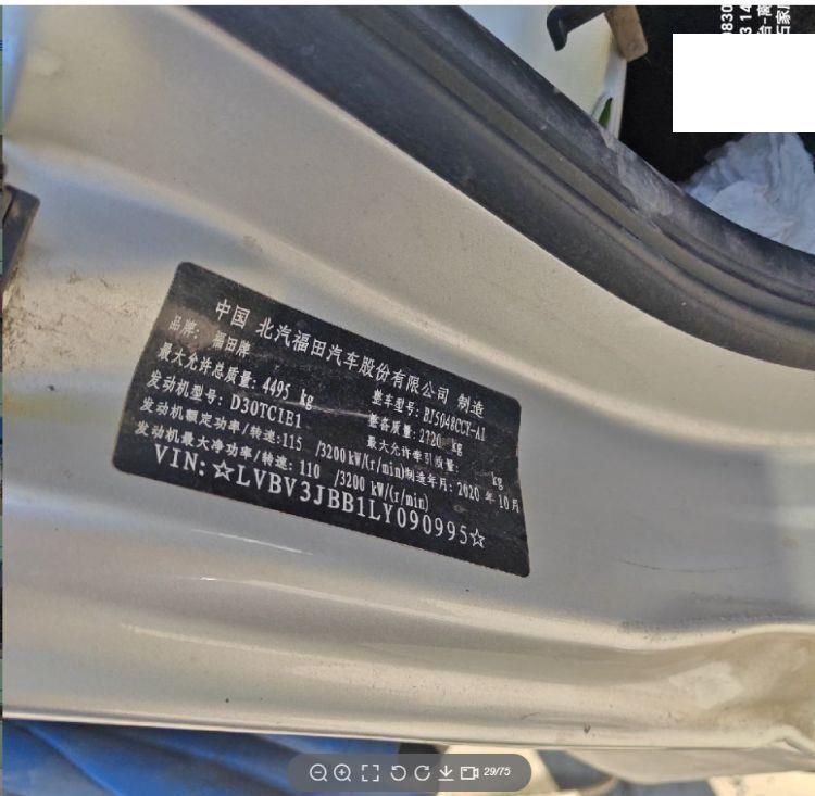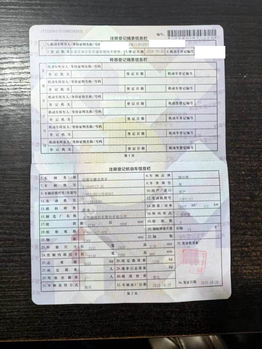 初次登记日期 2020-10-30 车辆名称 福田 奥铃