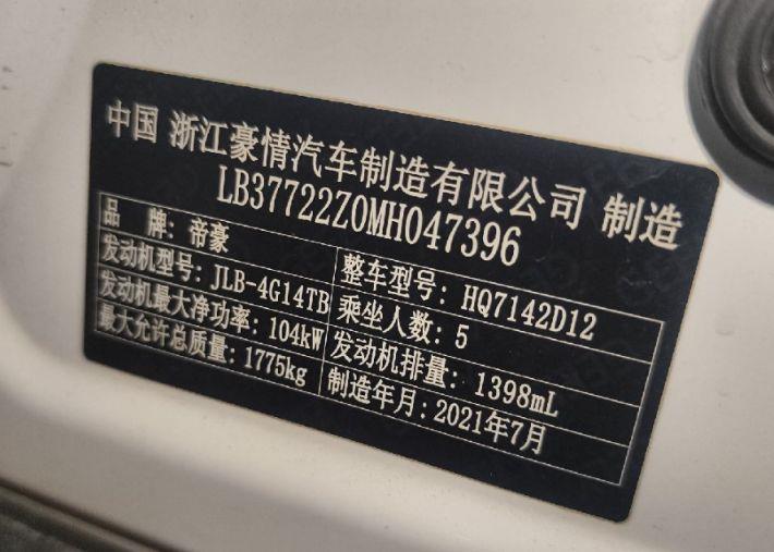 初次登记日期 2021-08-03 车辆名称 吉利汽车