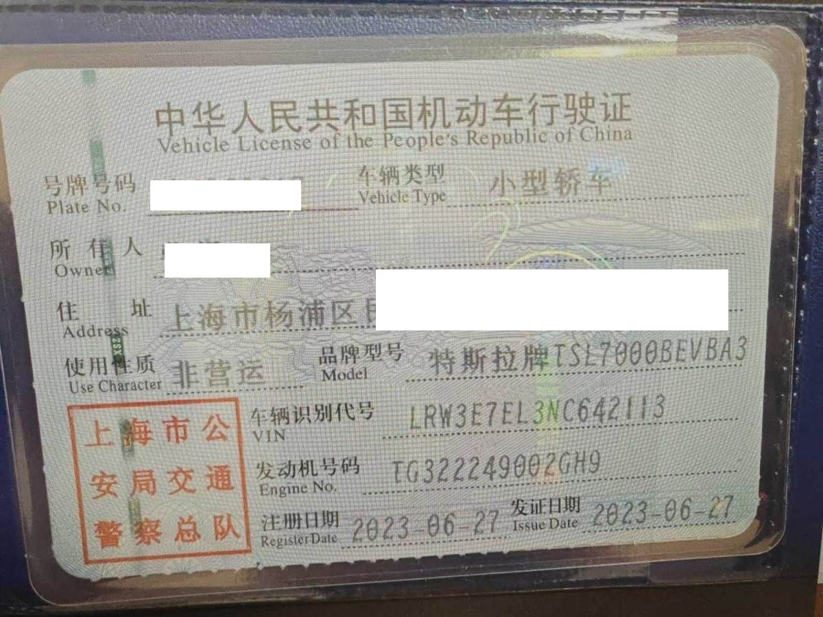 初次登记日期 2023-06-27 车辆名称 特斯拉