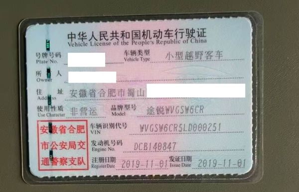 车辆归属地 安徽省合肥市 车辆停放仓库 上海市普陀区普陀区
