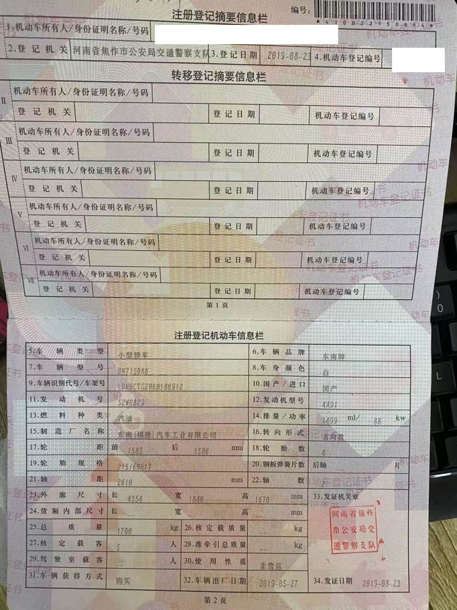 车牌号 豫****** 品牌 东南