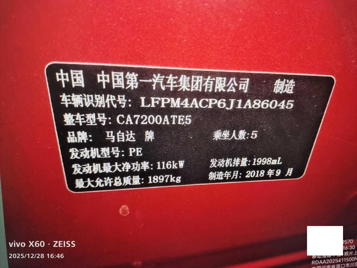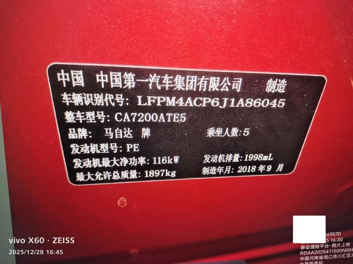 车牌号 豫****** 品牌 马自达