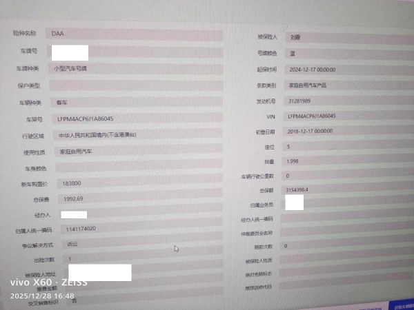 车架号是否受损 未知 使用性质 非营运