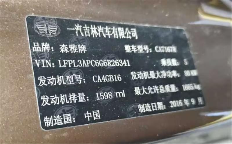 初次登记日期 2016-12-12 车辆名称 一汽 森雅R7