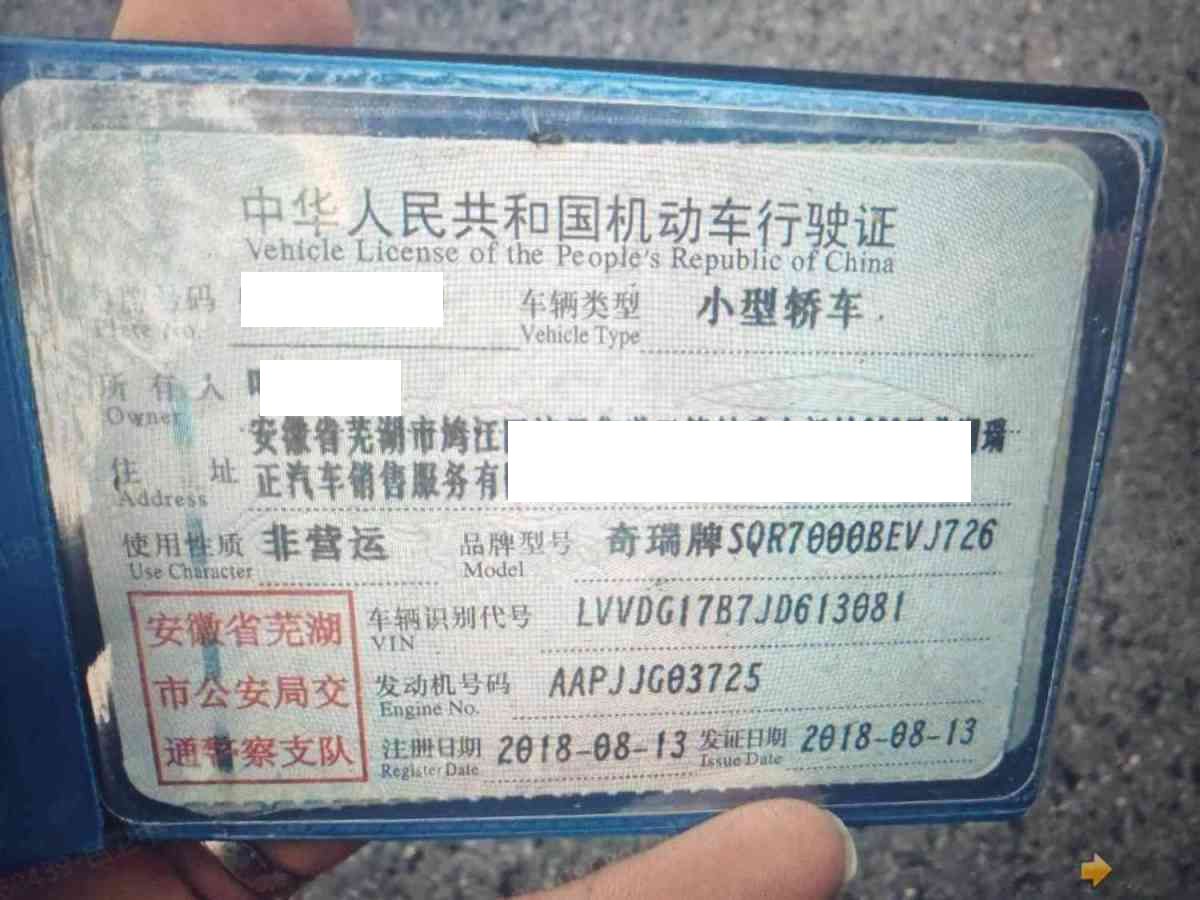 车牌号 皖****** 品牌 奇瑞