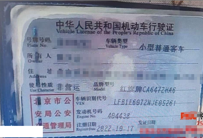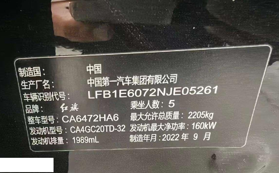 车牌号 京****** 品牌 红旗