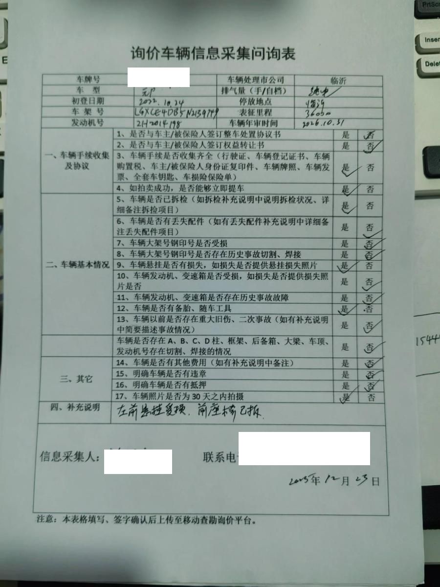 车架号是否受损 未知 使用性质 非营运