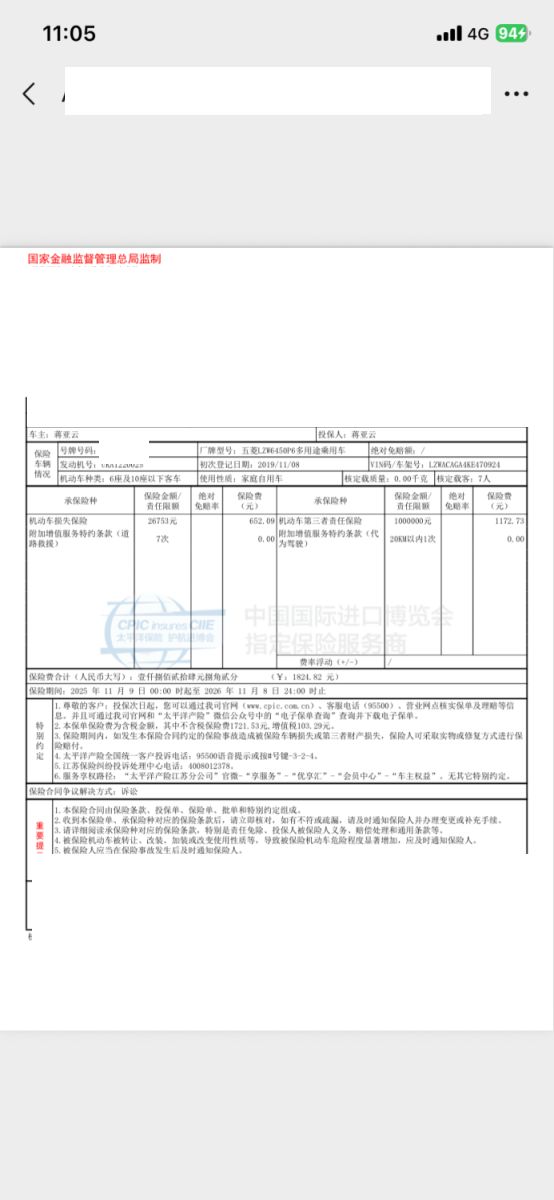 初次登记日期 2019-11-12 车辆名称 五菱汽车 五菱荣光