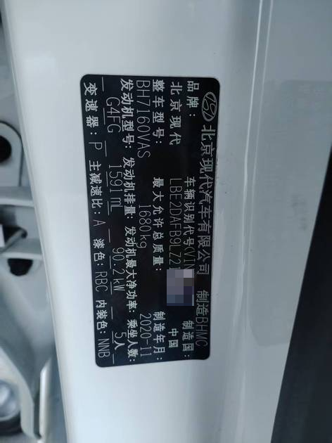初次登记日期 2020-12-21 车辆名称 现代 悦动