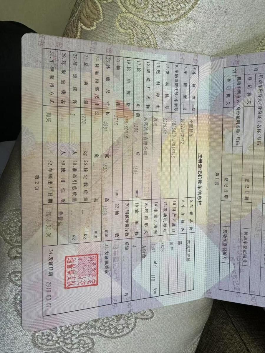 初次登记日期 2018-03-07 车辆名称 日产 天籁