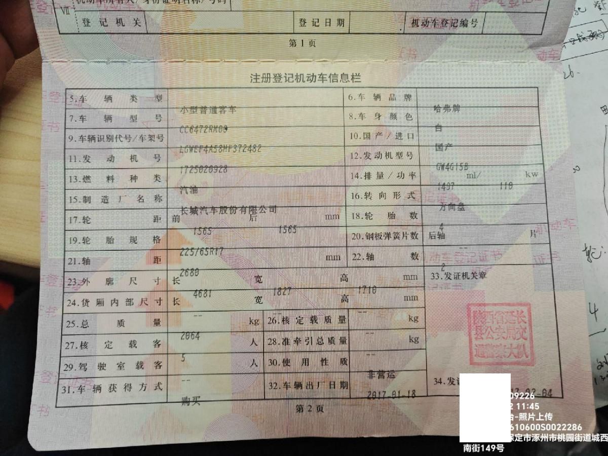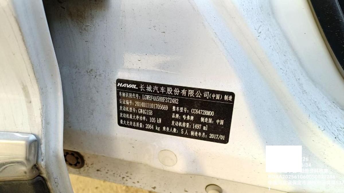 初次登记日期 2017-02-04 车辆名称 哈弗H6