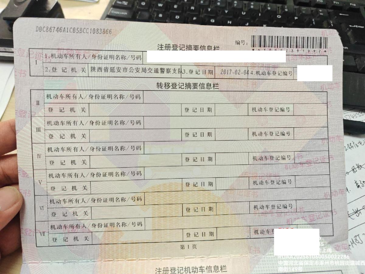 车辆归属地 陕西省延长术 车辆停放仓库 河北省涿州市涿州市