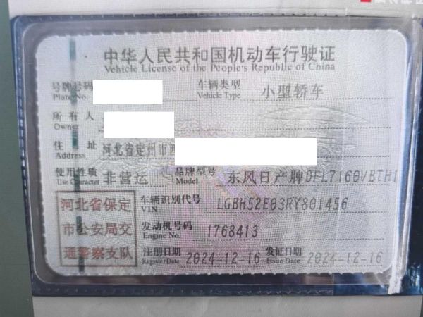 初次登记日期 2024-12-16 车辆名称 日产 轩逸